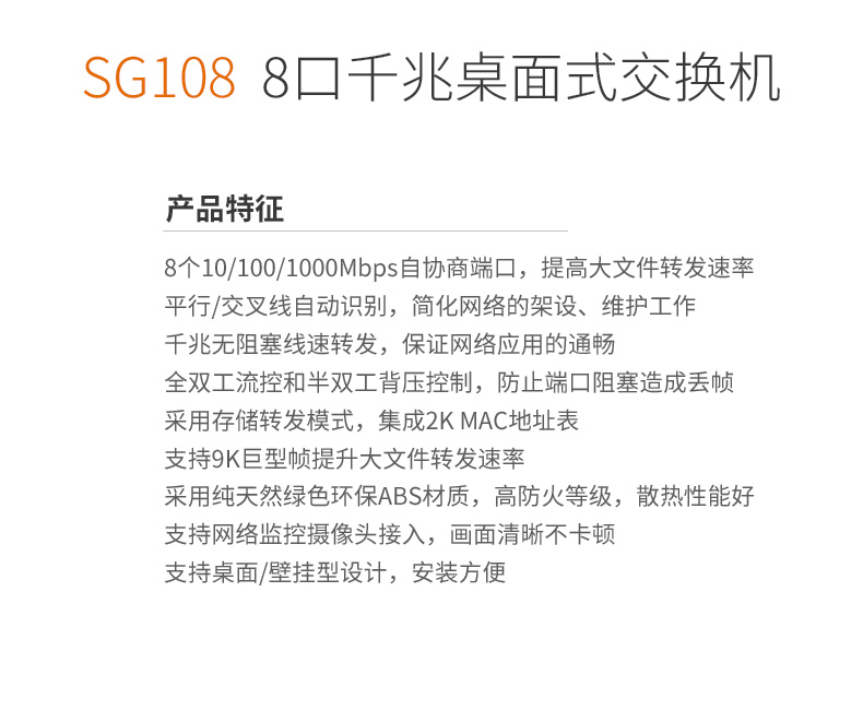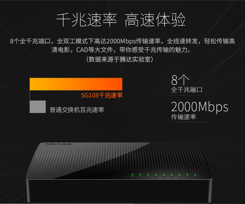 騰達SG108千兆交換機(jī) 百兆8口網絡監控交換器網線網絡分(fēn)線分(fēn)流器