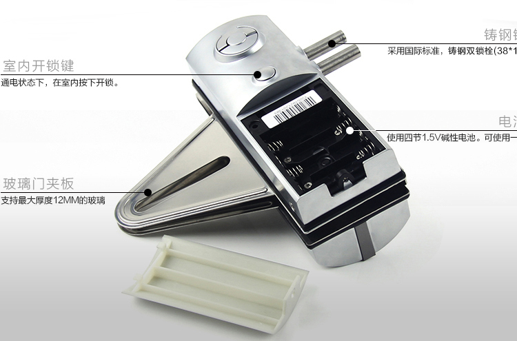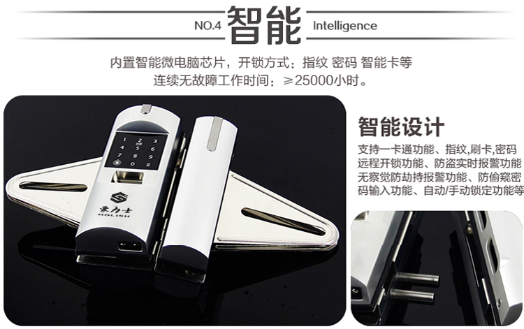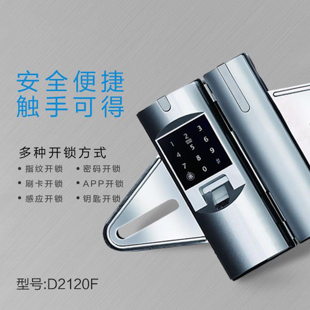 豪力士玻璃門(mén)禁指紋鎖鋅合金材質時尚銀D2120F